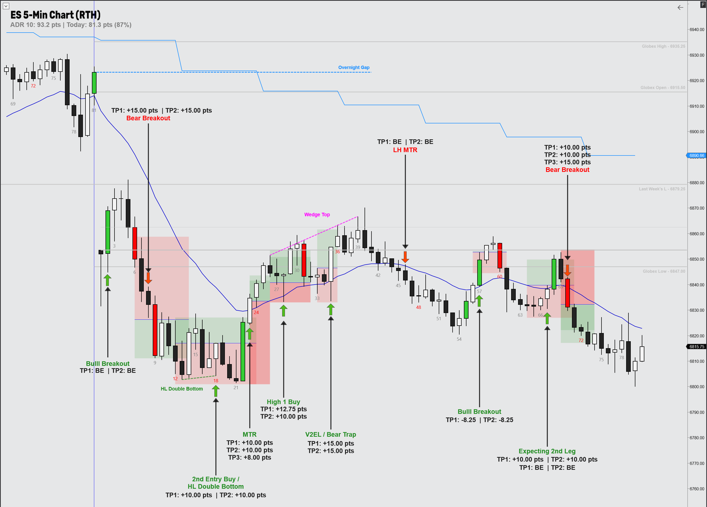 Another great trading day—lots of opportunities and decent movement. I had a few breakeven trades and 1 loser, but overall green on the day with a total of +169.25 MES pts.